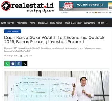 Ekonomi 2026 diproyeksikan lebih stabil. Daun Karya membahas strategi investasi properti dan perencanaan keuangan melalui Wealth Talk.